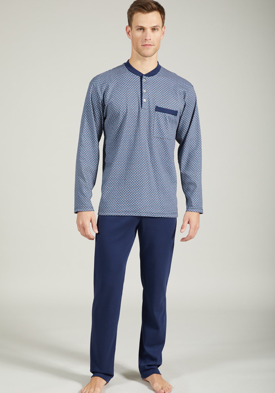 Introducing our exclusive men's pyjama with trimmed pockets in warm cotton – the perfect addition to infuse style and comfort into your wardrobe. Crafted with care and attention to detail, this men's pyjama embodies timeless and confort.